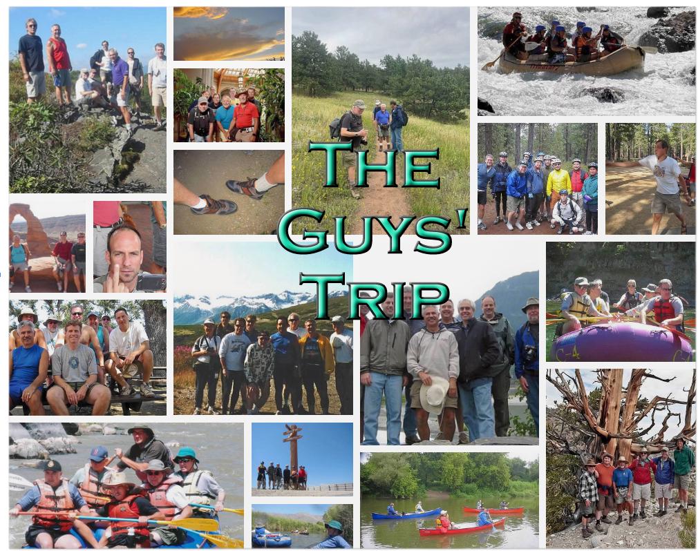 We are just a bunch of guys that know Mike. Some went to school with Mike. Some worked with him. Some were neighbors. Once a year, Mike plans a "guys' trip".  Check the links below for photos from most of the trips. The objective is adventure and fun.