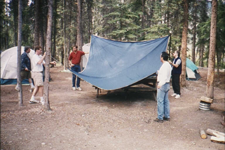 and Tom P. check out the Pine Lake campsite |